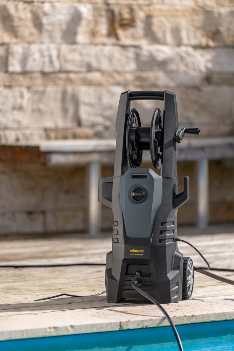 Mit dem Transportgriff, großen Laufrädern und 7 m Hochdruckschlauch bietet der AQUASTORM Premium höchsten Komfort und Bewegungsfreiheit.